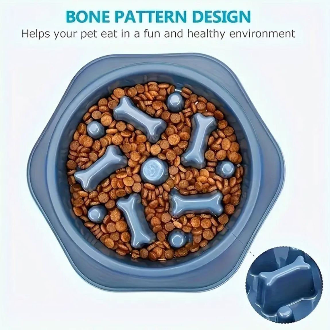 - This clever slow feeder bowl transforms mealtime into a fun puzzle that keeps your pup entertained while they eat. The textured, anti-slip base stays put during enthusiastic dining sessions, preventing spills and sliding across the floor. Perfect for weight management, it encourages slower eating habits that aid digestion and help your furry friend feel fuller for longer. Watch them work for their kibble like the clever canine they are!